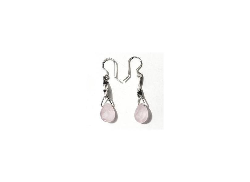 Brinco Quartzo Rosa Gota Em Prata 925 Artesanal- Id 5089