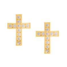 Brinco Rommanel Banhado A Ouro Cruz Cravejada Com Zircônias 524604