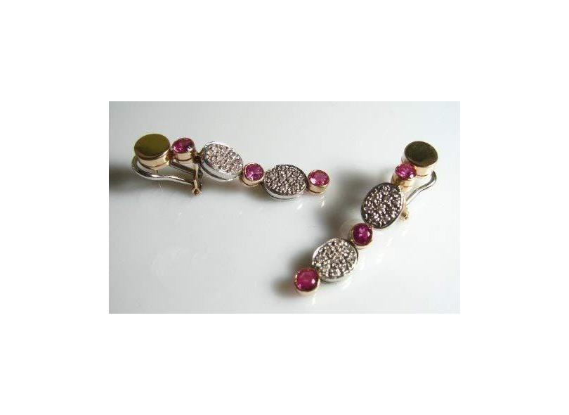 Brinco Rubi Rose Extra Pave De Brilhantes Ouro 18K K910