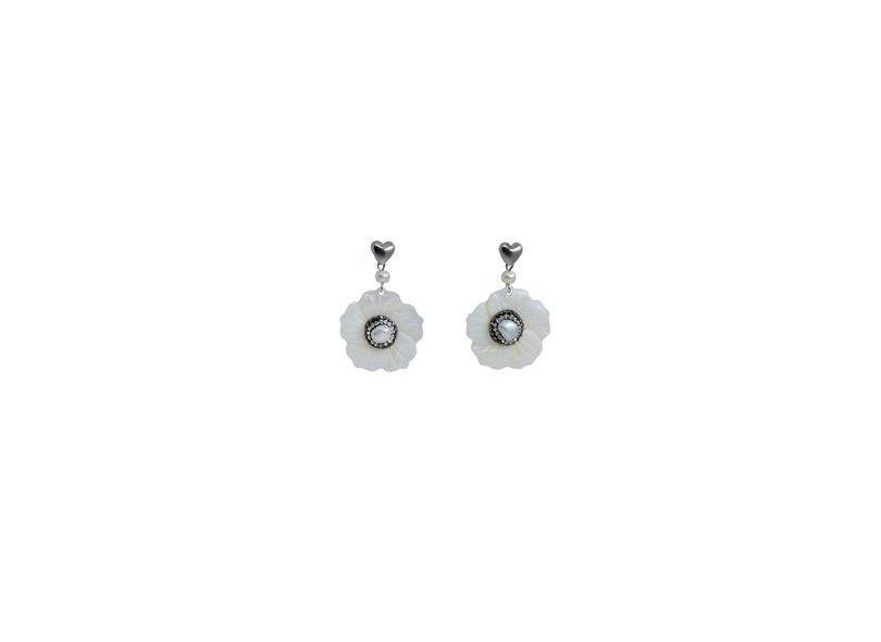 Brinco Semi Joia Flor Em Madrepérola Banhado A Rhodium