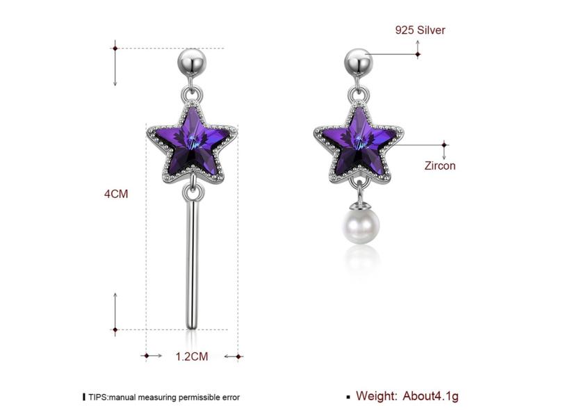 Brincos femininos Star Long Ear Drops S925 Prata Esterlina Zircão Feminino