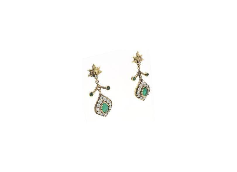 Brincos Joia Turca Gota Com Zircônias E Pedra Cor Jade