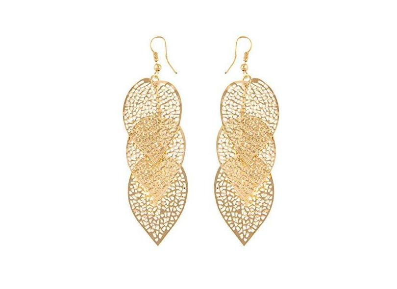 Brincos super1798, brincos femininos elegantes em formato de folha oca, brincos pendentes de gancho, joias de festa, presentes