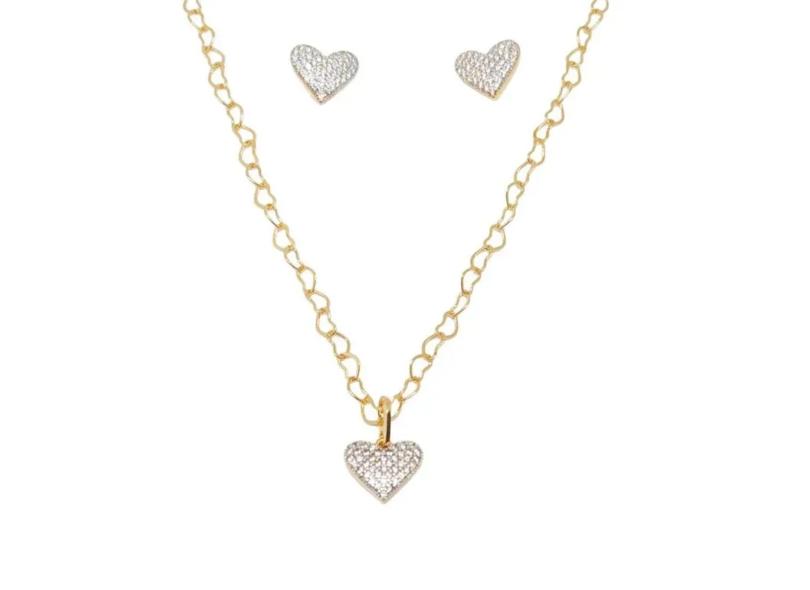 Conjunto Com Brinco E Pingente Formato Coração Cravejado De Pedras