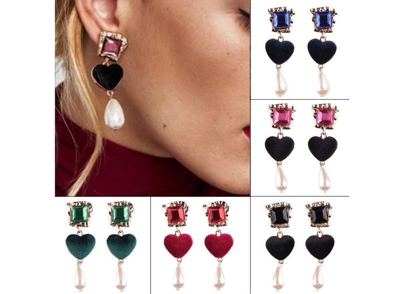 Declaração mulheres Simulado Pérola Brincos Coração Ear Drops Forma Dangle Brincos-G