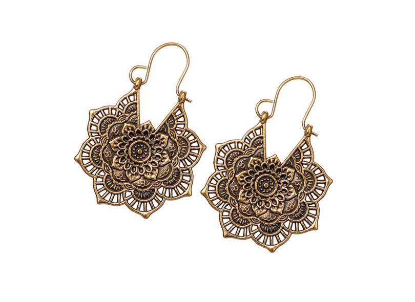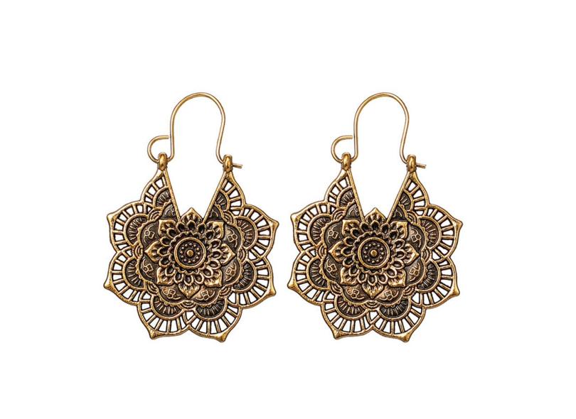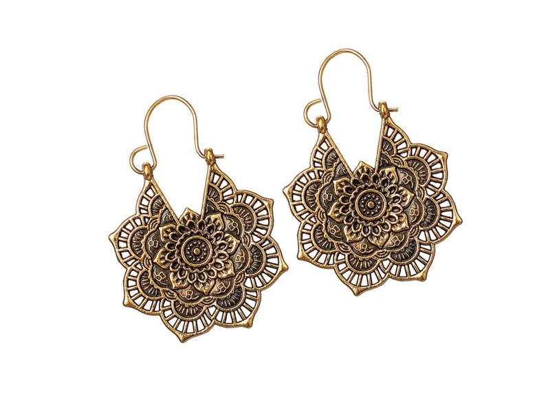 Flor tnico do estilo do metal Vintage cu aberto Flor Brincos C