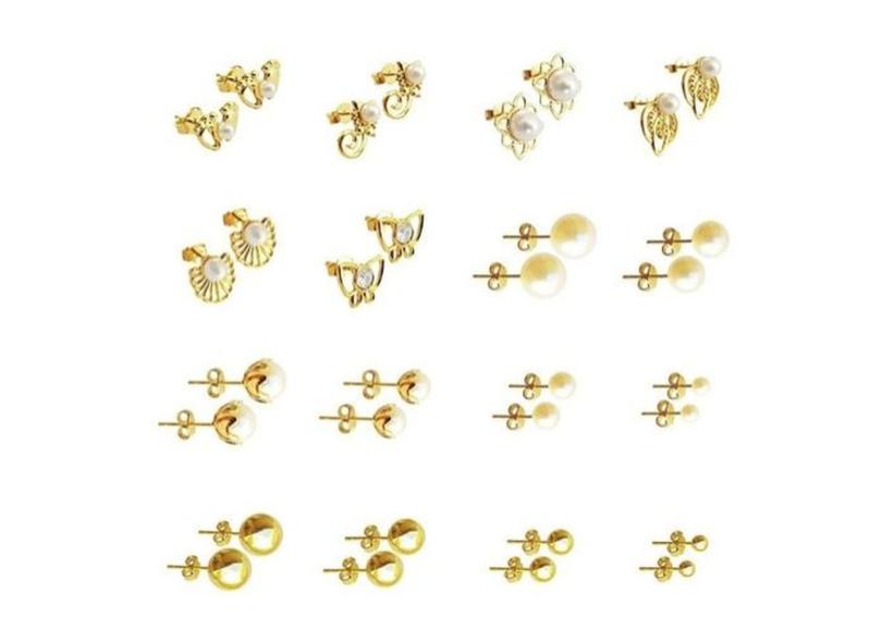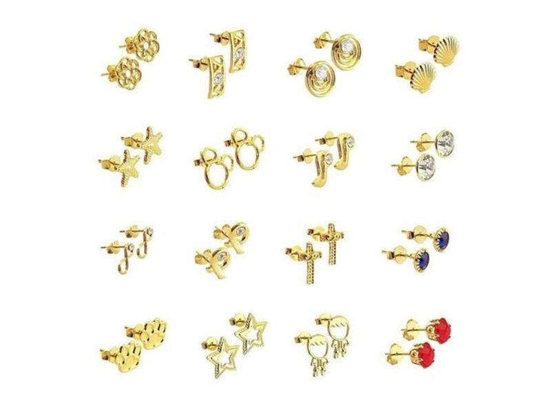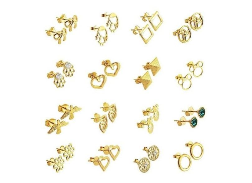 Kit 20 Pares Brincos Sortidos Strass Pedras Folheado Atacado