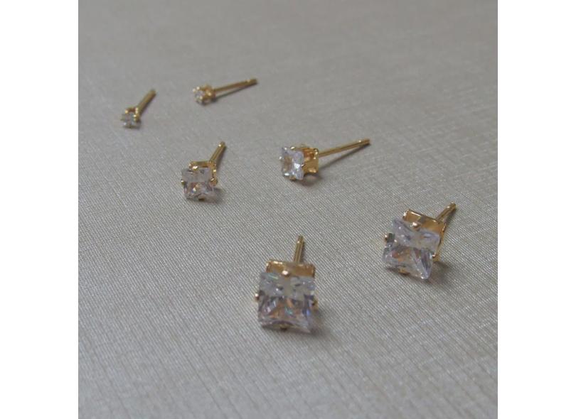 Kit 3 Brincos Folheado a Ouro Ponto de Luz Quadrado