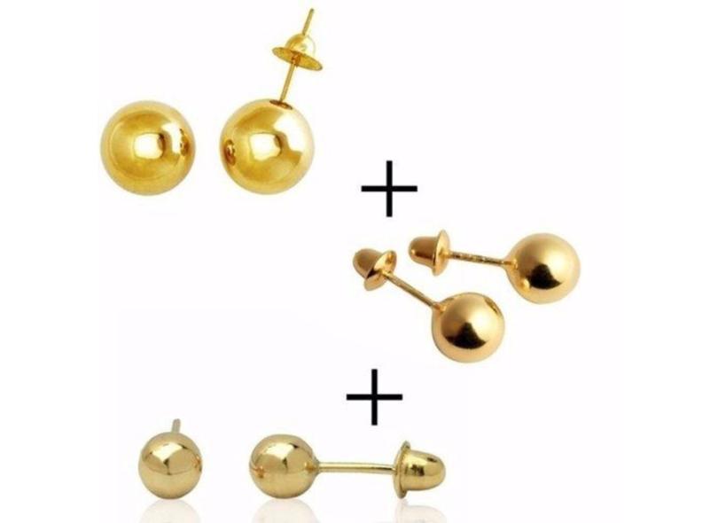 Kit Adulto Infantil Brinco Bola 6mm 5mm 4mm Joia Ouro 18k 750