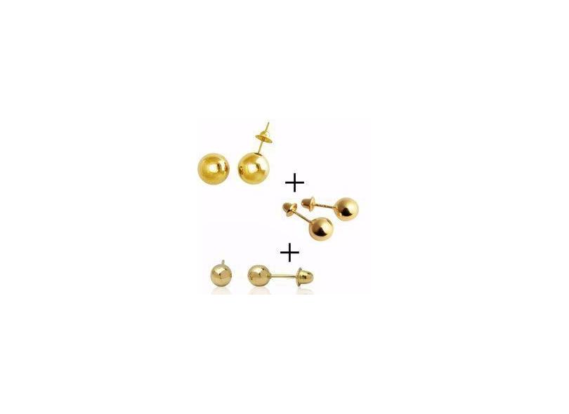 Kit Brinco Bola 5mm 4mm 3mm Segundo Furo De Ouro 18k 750