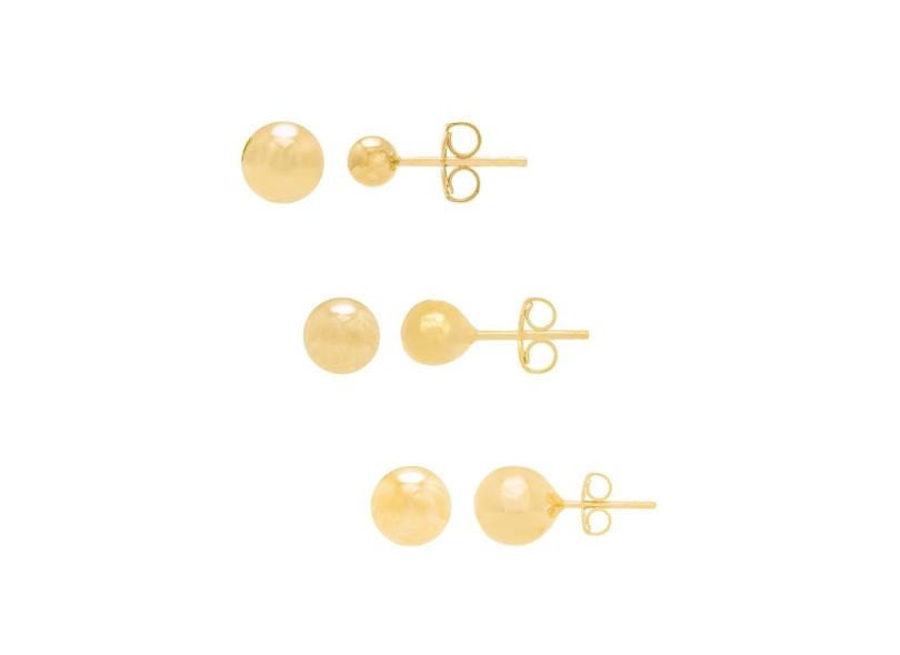Kit Rommanel Banhado Ouro Brincos Bola Lisa 4 MM 6 MM E 8 MM