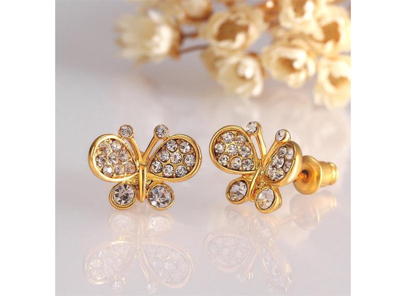 Lady Rhinestone borboleta liga de estanho banhado a ouro Ear Studs Brincos Jias