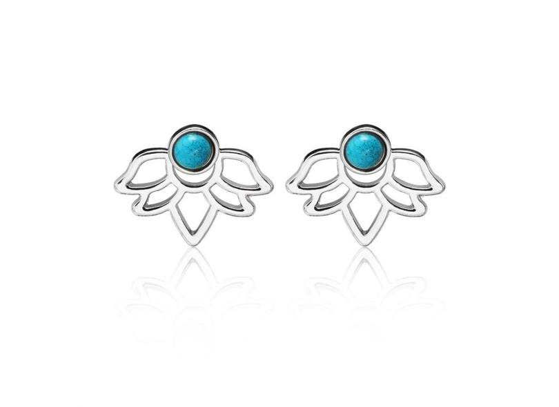 Lotus brincos flor de lotus oco joias com flor gemstone ouvido