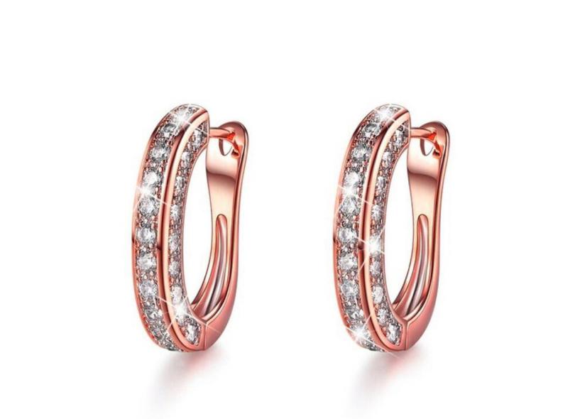 Moda luxo redondo de diamante brincos feminino prata ouro rosa brilhante