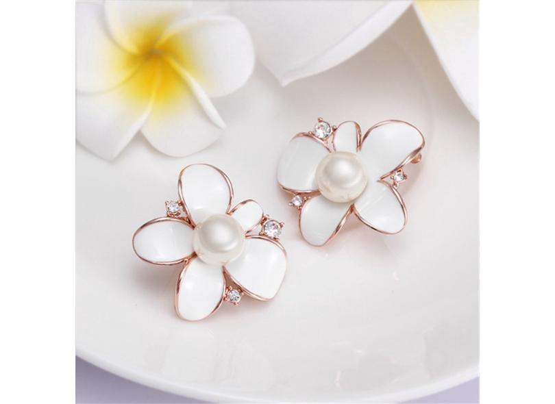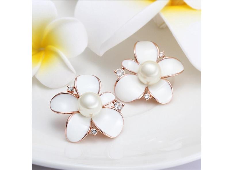 Padrão doce flor linda Faux Pérola Rose banhado a ouro brincos de presente