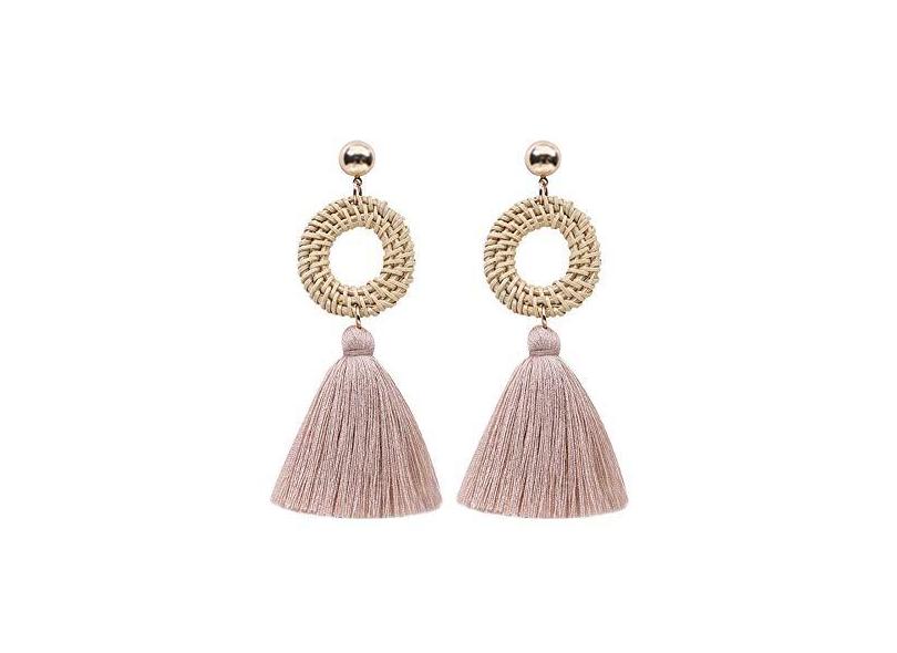 Super1798 – Brincos femininos Boho de tecido de ratã vazado com borla e pino longo