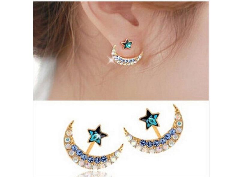 Vintage Linda Estrela De Cristal Sol Lua Strass Brincos Pendurados Populares