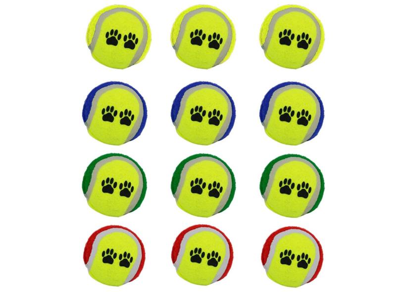 Bola de Tênis Pet Brinquedo Mordedor Sonoro 12 Unidades