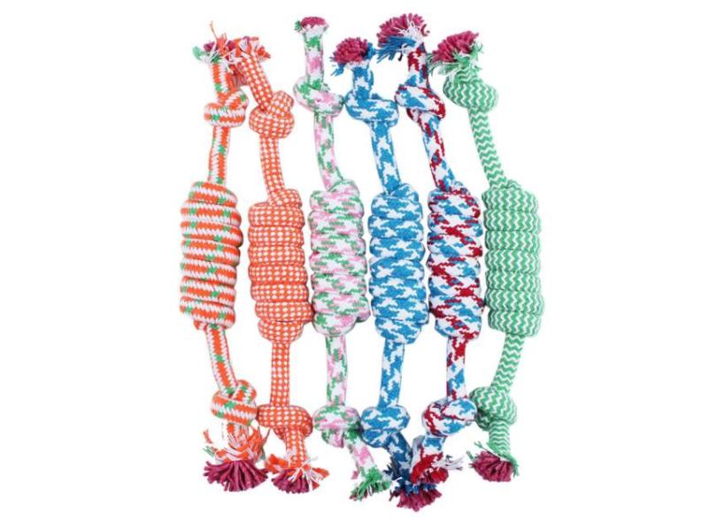 Filhote de cachorro Brinquedo de animal de estimação Algodão Trançado Corda de Osso Chew Nó Cor aleatória
