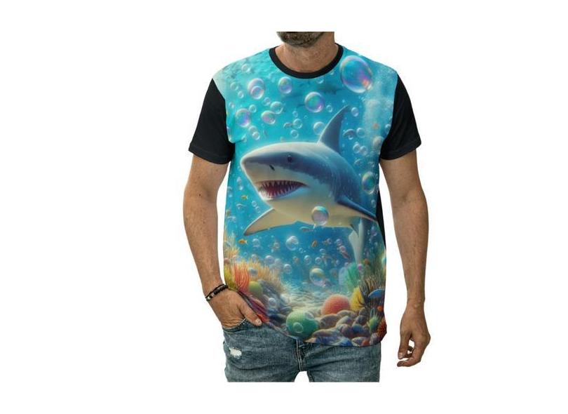 O menor preço encontrado no Brasil para Camiseta Tubarão No Fundo Do Mar Oceano Bolhas Alga Marinha - Darkwood atualmente é R$ 60,36.