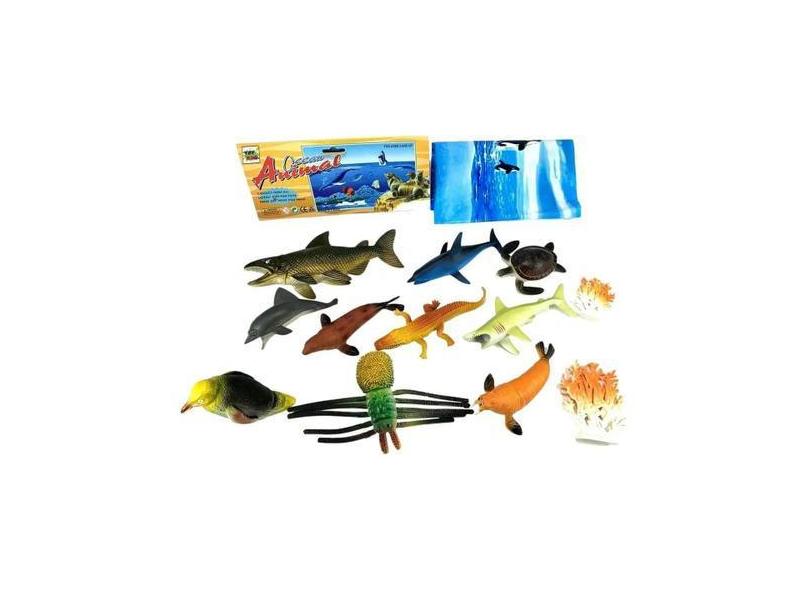 Kit Fundo Do Oceano Brinquedo 12 Animais Peixe Tartaruga Foca - Toys