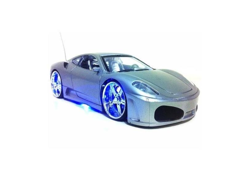 Carrinho Controle Remoto Ferrari corrida LEDs - prata