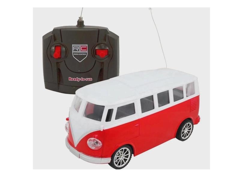 Carrinho de Controle Remoto Kombi Vermelha Acende Farol á Pilha