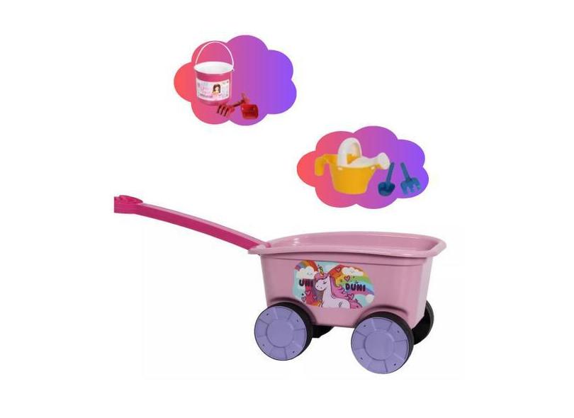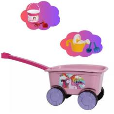 Carrinho De Mao Brinquedo Infantil Criança Rosa Com Pá Rastelo Praia -