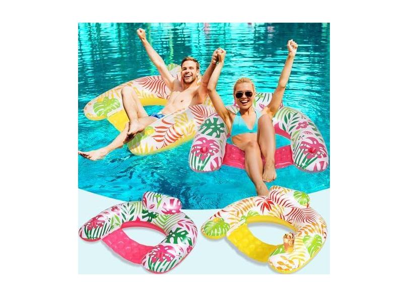 VercanMonth Pacote com 2 cadeiras infláveis de piscina para adultos, cadeiras de piscina com suporte de copo, boias flutuantes portáteis para piscina, brinquedos de verão, boias flutuantes para festa