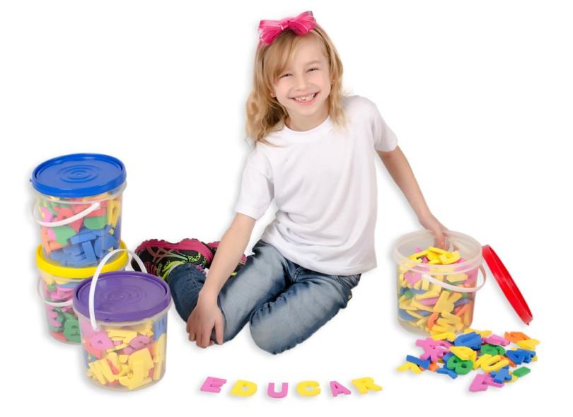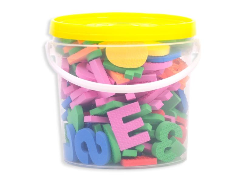 Balde Com 152 Letras, Números E Sinais Em Eva- Tampa Amarela