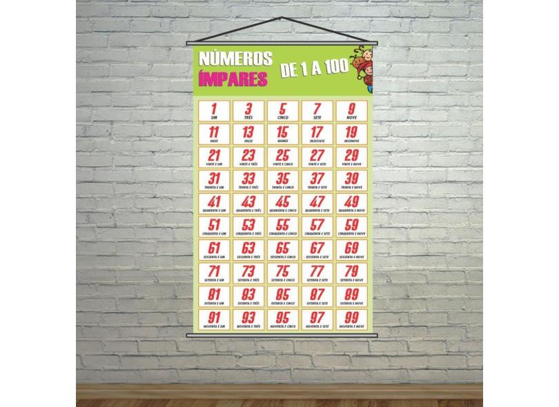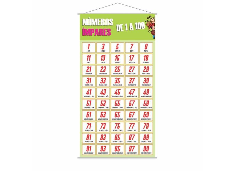 Banner Pedagógico Escolar Números Ímpares Até 100 - 120X65Cm