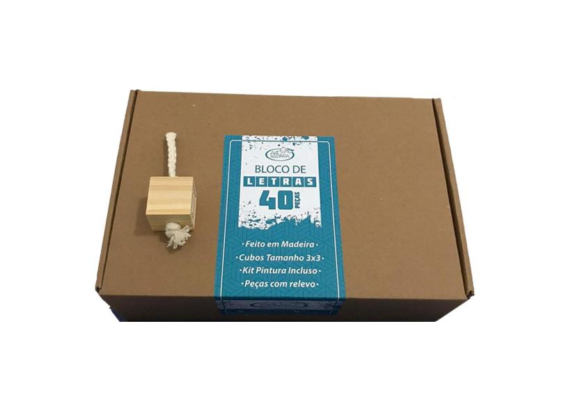 Bloco de Letras 40 Cubos em Madeira Crua - Artyara