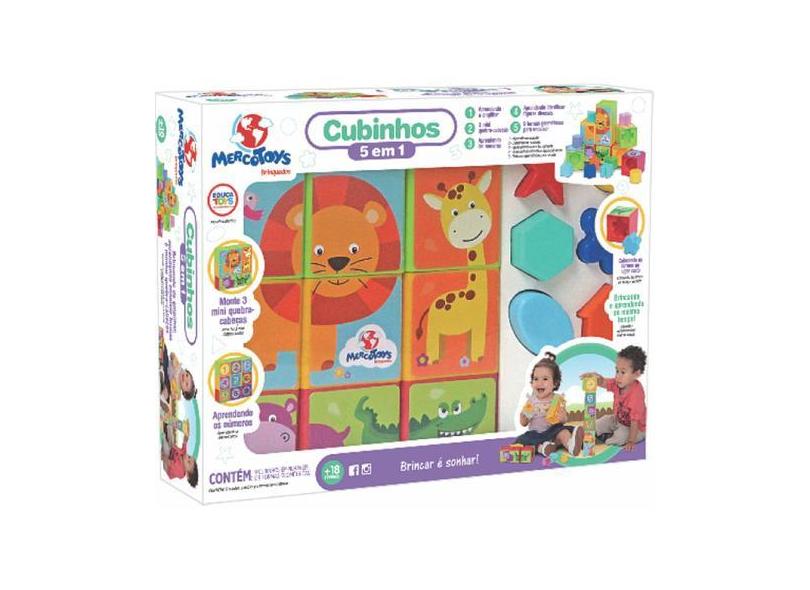 O menor preço encontrado no Brasil para Brinquedo Educativo Cubinhos 5 Em 1 - Merco Toys atualmente é R$ 73,43.
