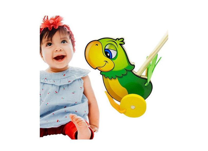 Brinquedo Educativo De Empurrar Louro Rola Em Mdf - Maninho Brinquedos