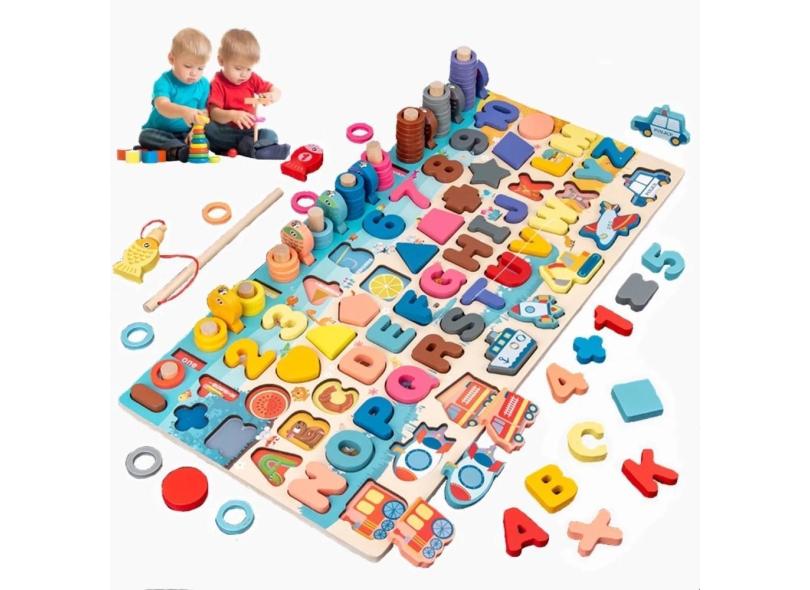 Brinquedos Educativos Tábua de Madeira Letras Matemáticas Infantis