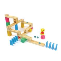 Meu filho tem 3 anos! Achei q ele não ia se interessar tanto mas ele ama! Ele ainda não tem a habilidade de montar mas adora colocar coisas diferentes pra bolinha cair no final. As peças se movimentam e as vezes sai do lugar mas é só reposicionar as peças.