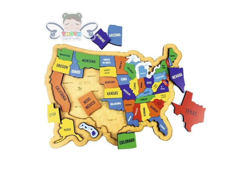 Mapa dos Estados Unidos Quebra-Cabeça, Brinquedo Educativo