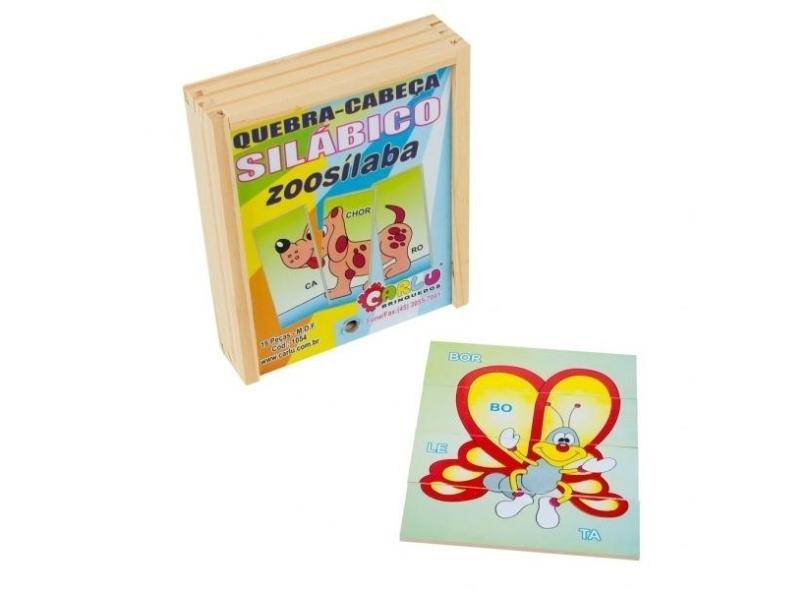 Quebra-Cabeça Silábico Zoosílaba em Madeira com 18 Peças