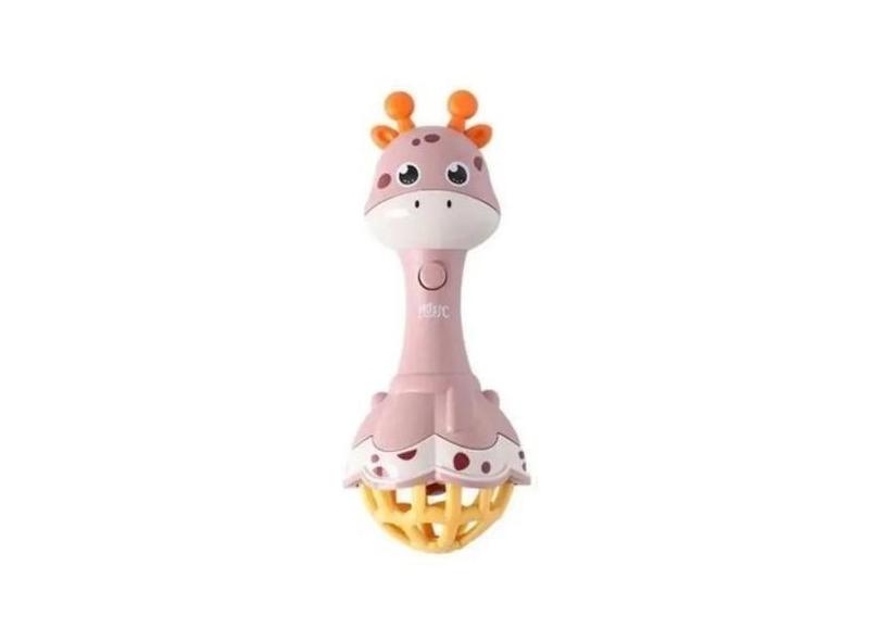 Chocalho E Mordedor Musical Com Luz Girafinha Marrom Kitstar