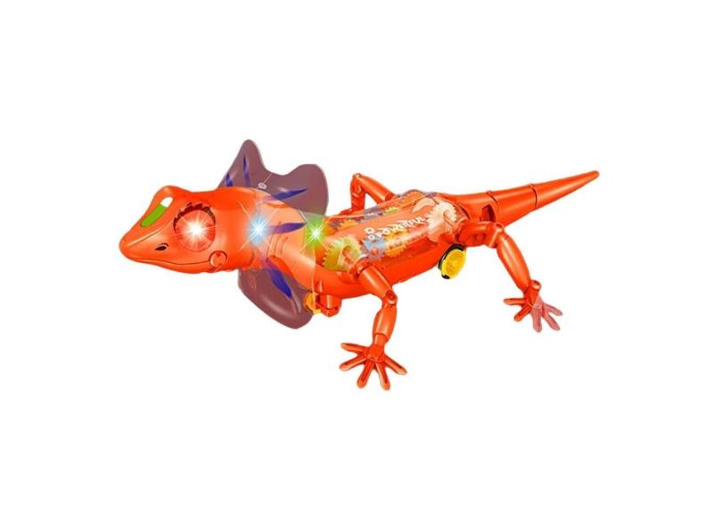 Simulação de brinquedo mecânico elétrico de lagarto com luzes de som
