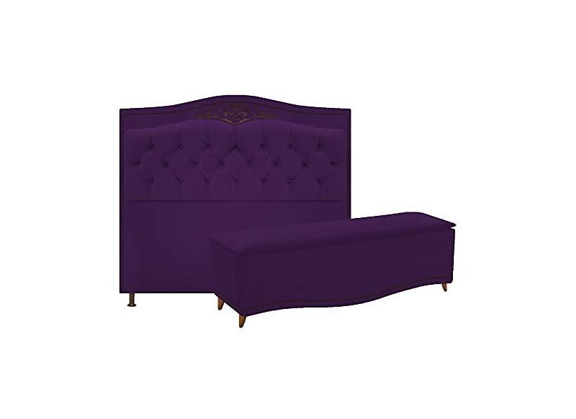Conjunto Cabeceira Estofado Yasmim + Recamier Baú Yasmim 90 Cm Para Cama Box Solteiro Quarto Suede Roxo - Amarena