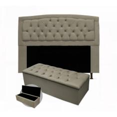 Kit Cabeceira Casal Geovana 140 cm Mais Calçadeira 140 cm Suede Bege