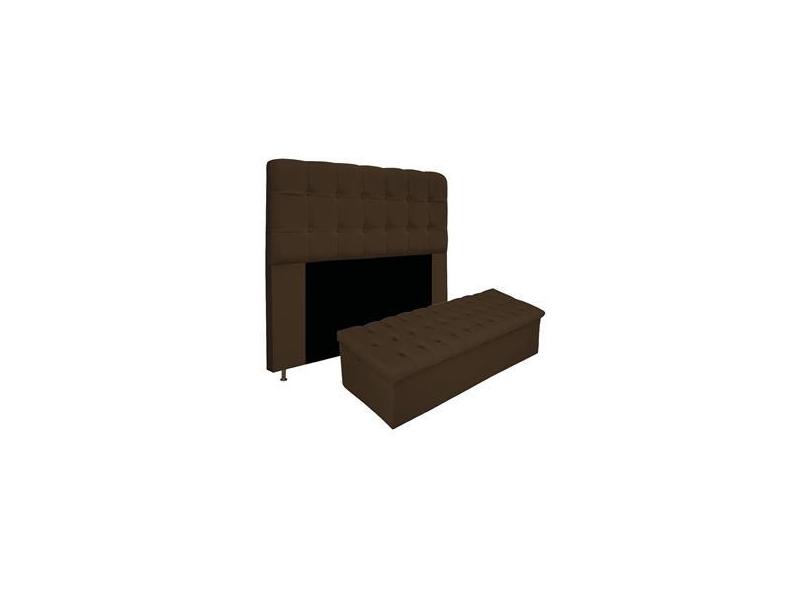 Kit Cabeceira e Calçadeira Baú Estofada Mel 195 cm King Size Com Capitonê Suede Marrom - Amarena Móveis