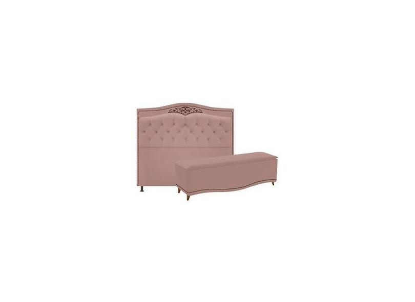 Kit Cabeceira e Calçadeira Yasmim 160 cm Queen Size Suede Rosê - ADJ Decor