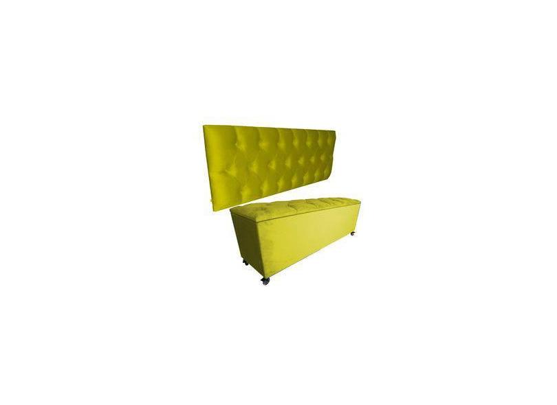 Kit Cabeceira E Recamier Luna Capitonê Baú Casal Suede Rbl