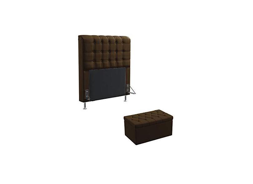 Kit Cabeceira Estofada Decorativa Cama Box Dama 90 Para Cama de Solteiro e Calçadeira Sagitarius Sued Marrom Aradecor