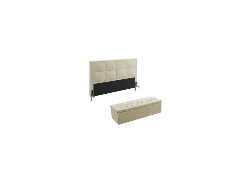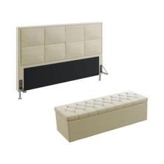 Kit Cabeceira Estofada Maia 195 Para Cama King e Calçadeira Sagitarius Sued Bege Aradecor