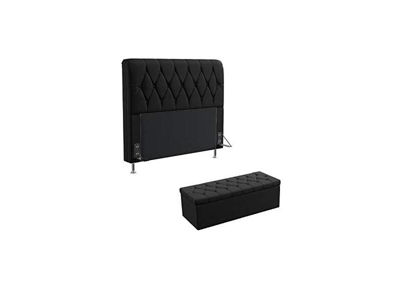 Kit Cabeceira Estofada Para Cama Box Sirius 140 Para Cama Casal e Calçadeira Sagitarius Couro Artificial Aradecor