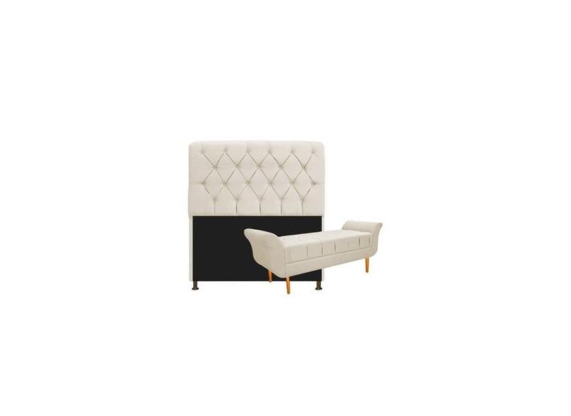 Kit Cabeceira Estofado Lady e Recamier Ari 100 cm Solteiro Corano Bege - Amarena Móveis