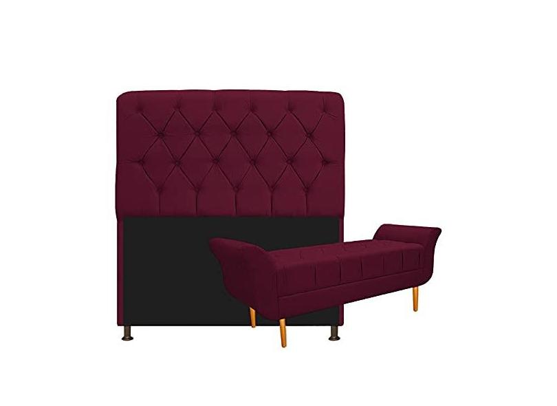 Kit Cabeceira Estofado Lady e Recamier Ari 160 cm Queen Size Suede Bordô - Amarena Móveis